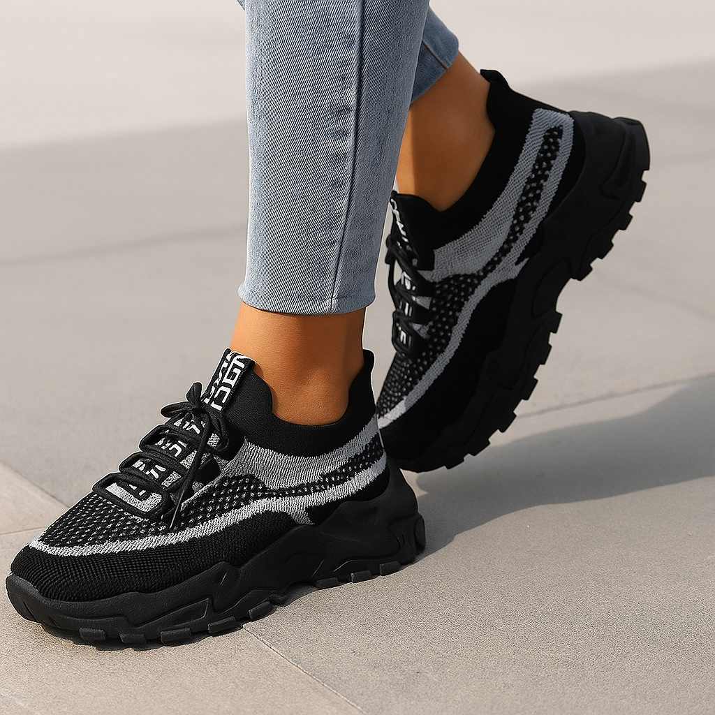 Tenisky NovaFlex jsou navrženy pro moderní ženy, které hledají lehkost, podporu a design. Jejich prodyšná síťovina obepíná nohu jako druhá kůže, zatímco silná gumová podrážka zajišťuje optimální stabilitu při každém kroku.