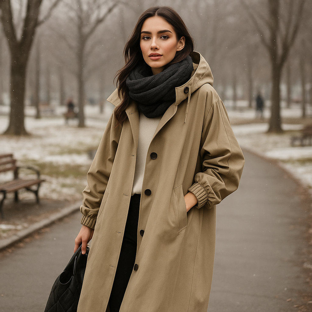 Trenčkot Simona vás ochrání před větrem a deštěm, aniž byste museli obětovat styl. Jeho přiléhavý střih zvýrazňuje pas a zároveň zajišťuje volnost pohybu. Nadčasový design, který je vhodný jak pro každodenní nošení, tak pro zvláštní příležitosti.