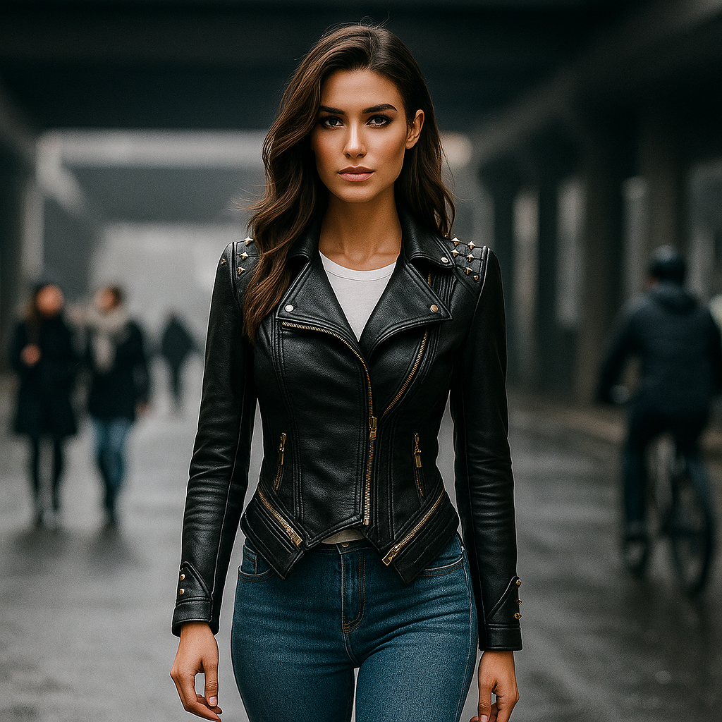 Objevte odvážný a rebelský styl s touto přiléhavou gotickou koženou bundou. Unikátní kombinace kovových zipů a přezek vytváří drsný výraz. Perfektní jak na denní nošení, tak na večer, zanechává trvalý dojem.