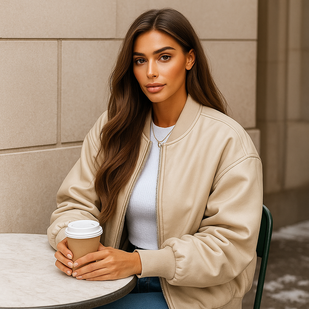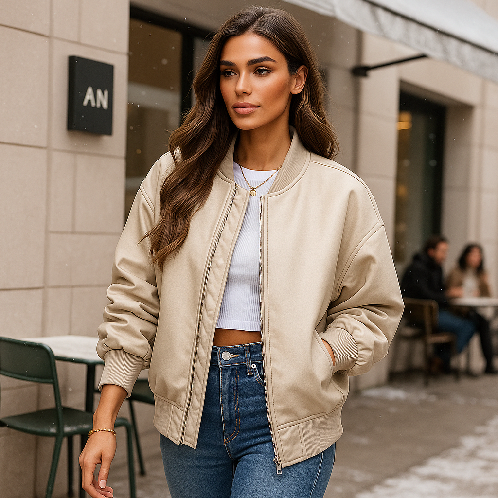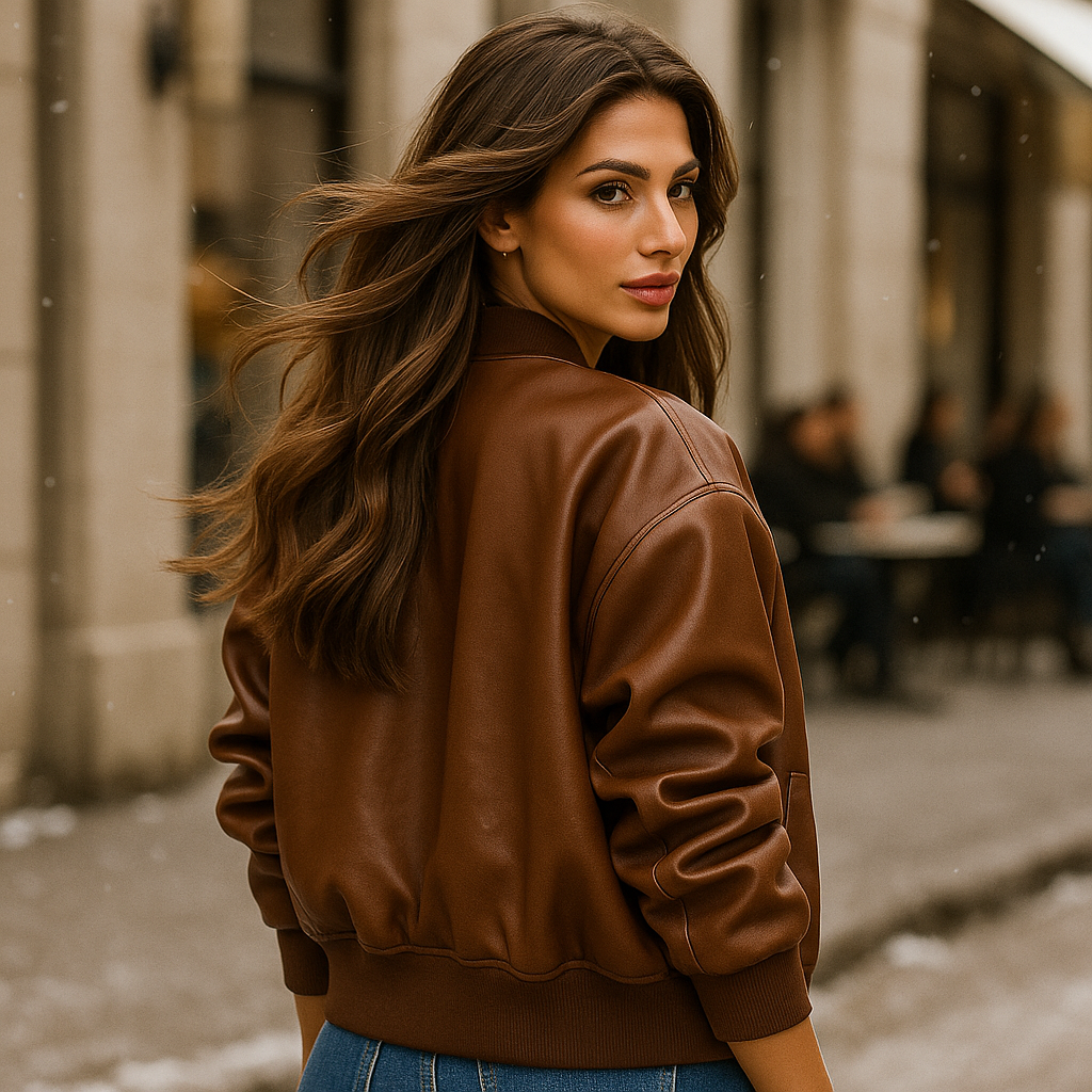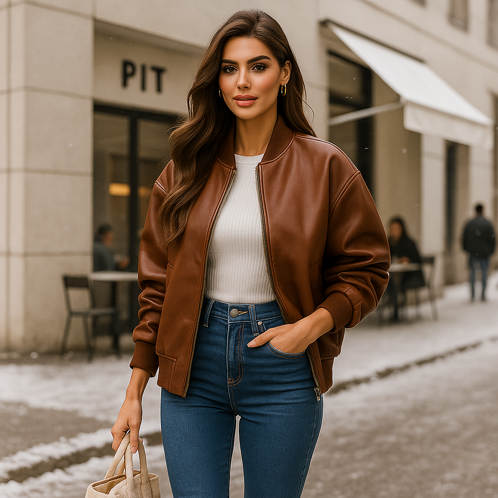 Dámská kožená bunda spojuje pohodlí a styl v oversize střihu. Bezpečný zip a žebrované lemy nabízejí moderní a neformální vzhled. Ideální pro každodenní nošení a neformální události vyžadující nádech odvahy.