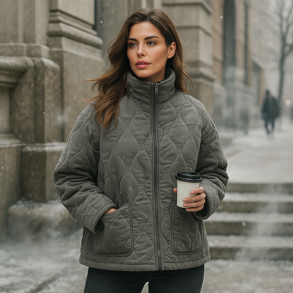 Tato prošívaná dámská bunda kombinuje teplo a pohodlí v oversize designu. S praktickými kapsami a zipem je funkční i moderní. Perfektní pro zvládnutí zimního chladu bez kompromisů ve stylu.