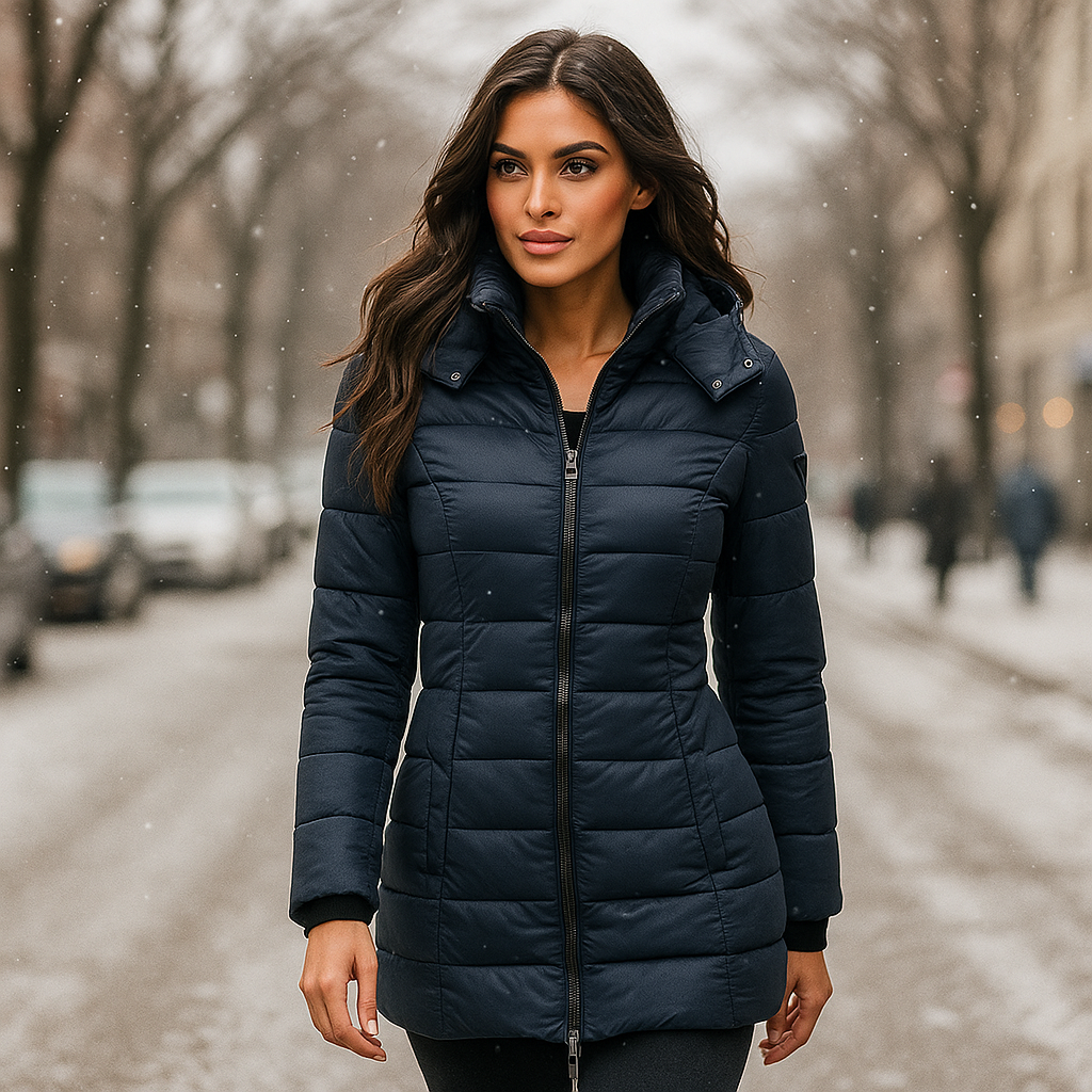 Dlouhá péřová bunda Elisa spojuje teplo a městskou eleganci tím nejlepším způsobem. Její štíhlý střih a prošívaný design zaručují pohodlí po celý den. Ideální pro městský život i venkovní dobrodružství v chladnějších obdobích.
