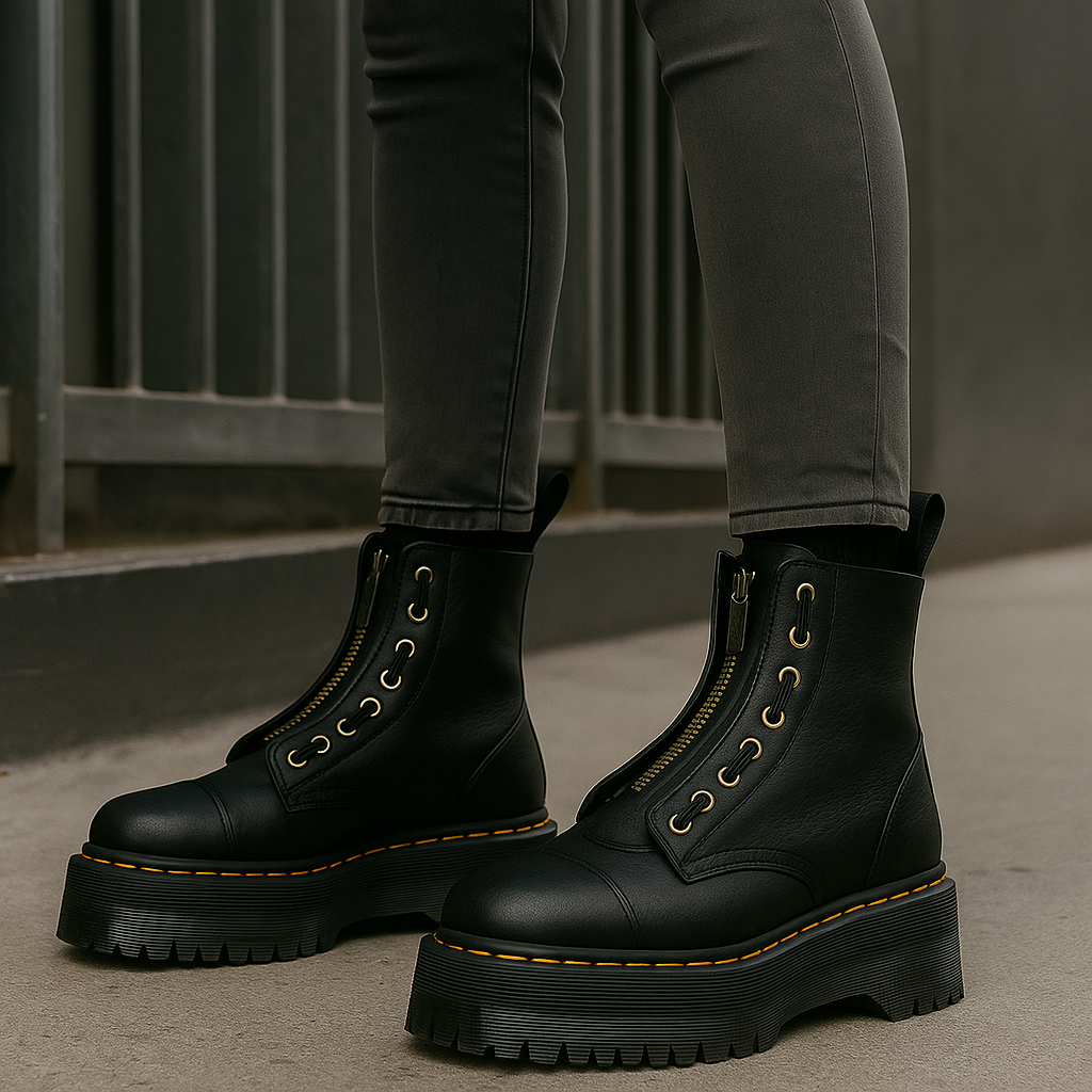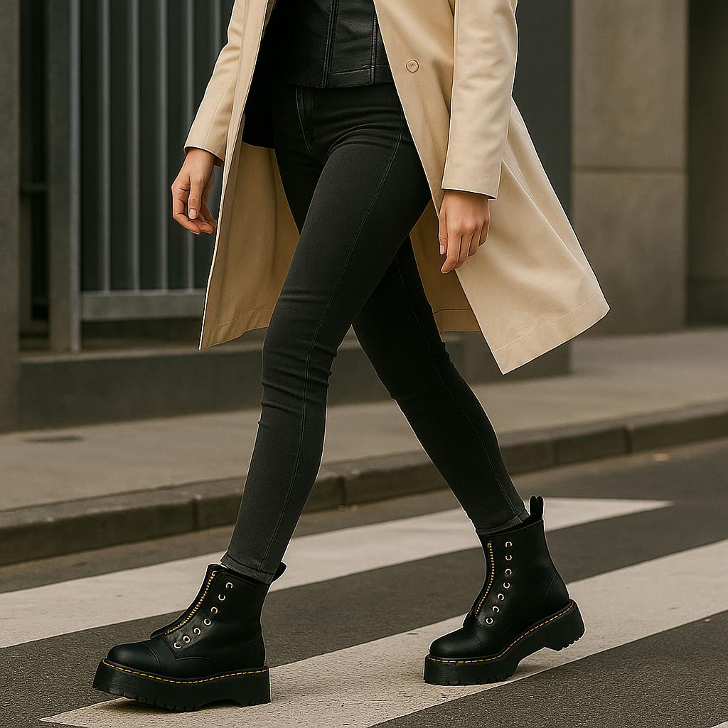 אמצו מראה בטוח עם מגפוני הפלטפורמה האלה בהשראת הסגנון האורבני. הסוליה המחודדת והעיצוב החזק שלהם מציעים הליכה יציבה ומלאת אופי, אידיאלית להתמודדות עם העיר בביטחון.