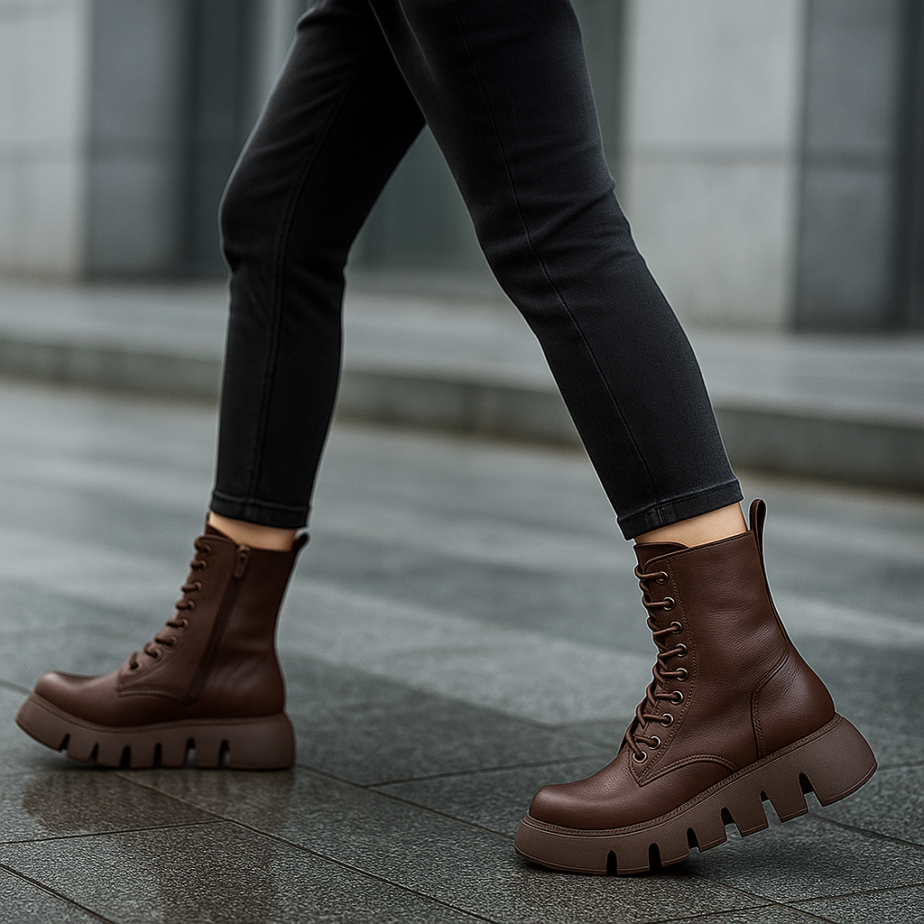 שלבו אלגנטיות ורווחה עם המגפיים מעור פרימיום שלנו. מעוצבים להחזיק מעמד, הם מציעים חום, תמיכה והקלה ממוקדת לכפות הרגליים שלכם, לאורך כל היום.