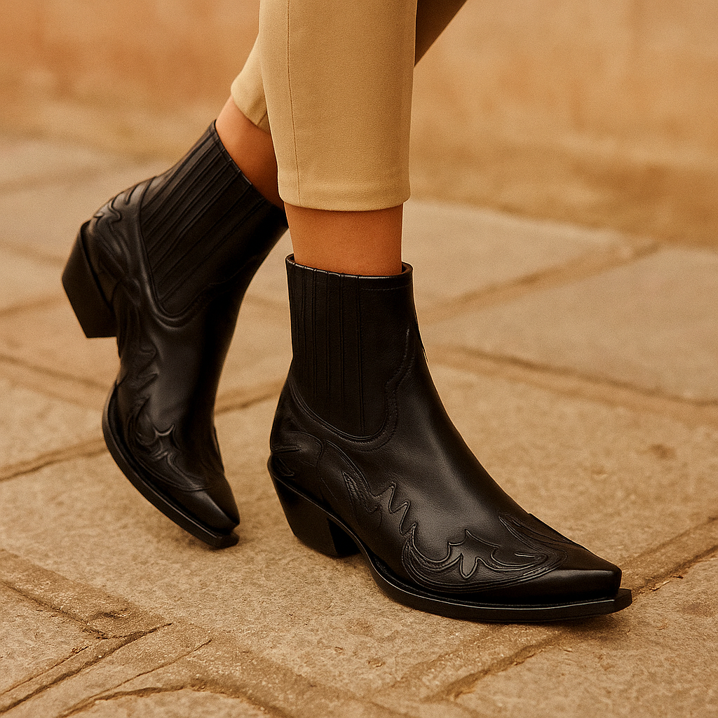 מגפי קאובוי אלו משלבים קסם מסורתי עם נוחות מודרנית. העיצוב המעודן והסוליה החזקה שלהם מבטיחים סגנון נצחי ויציבות מושלמת ביום-יום.