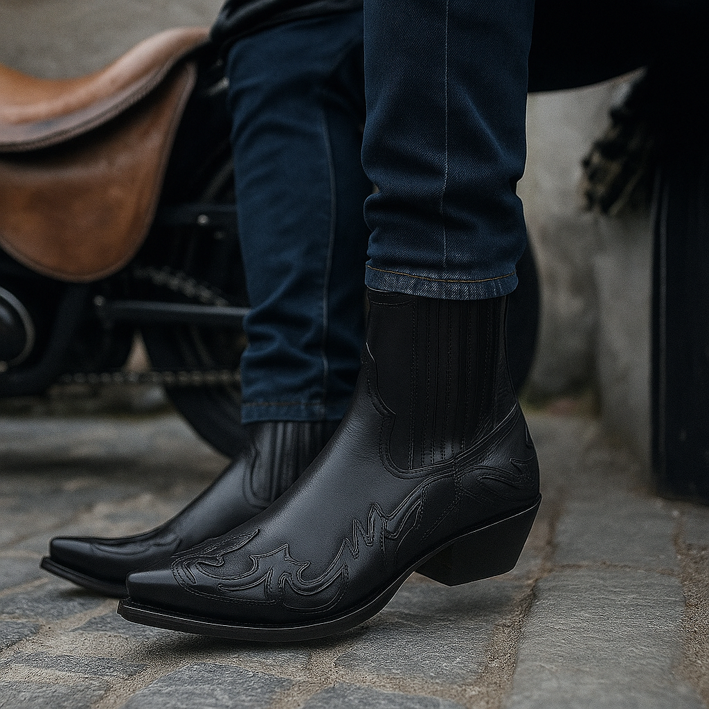 הביעו את האופי שלכם עם מגפי קאובוי מעור, שילוב מושלם בין עמידות ואלגנטיות. החיתוך הקלאסי והפרטים הרקומים הופכים אותם לפריט נצחי, אידיאלי למראה בטוח ומודגש.