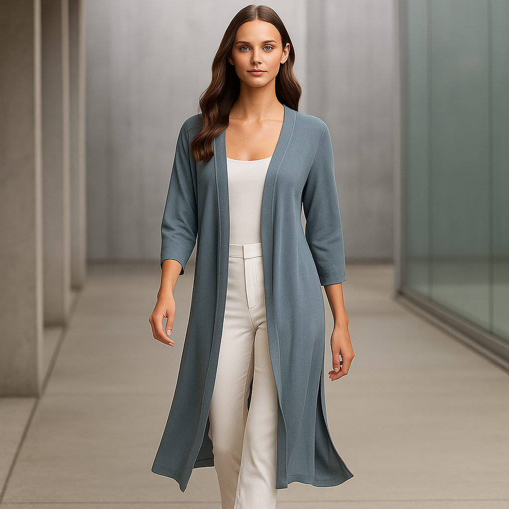 הקרדיגן הארוך הזה משלב נוחות וסטייל עם סריג רך וקל שמחמם מבלי להכביד. הגזרה האלגנטית והרב-תכליתית שלו הופכת אותו לפריט הכרחי ליום-יום ולערבים חגיגיים.