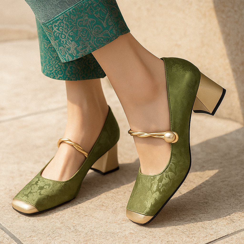 הוסף נגיעה של אלגנטיות למראה שלך עם הנעליים המהממות האלה, מושלמות לכל אירוע מיוחד. העיצוב המרובע הייחודי וההטבעה הפרחונית המורכבת יוצרים מראה מעודן, בעוד העקבים היציבים מספקים יציבות במהלך ההליכה.