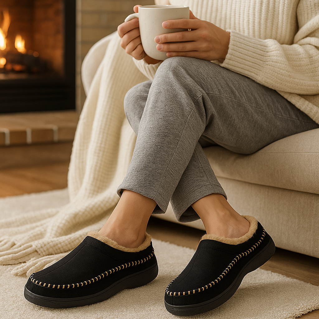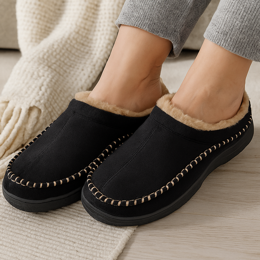 תהנו מנוחות יוצאת דופן עם נעלי בית מרופדות בפרווה רכה, מושלמות לימים הקרירים. הסוליה נגד ההחלקה והפנימי הרך מבטיחים חום, יציבות ומנוחה בכל צעד.