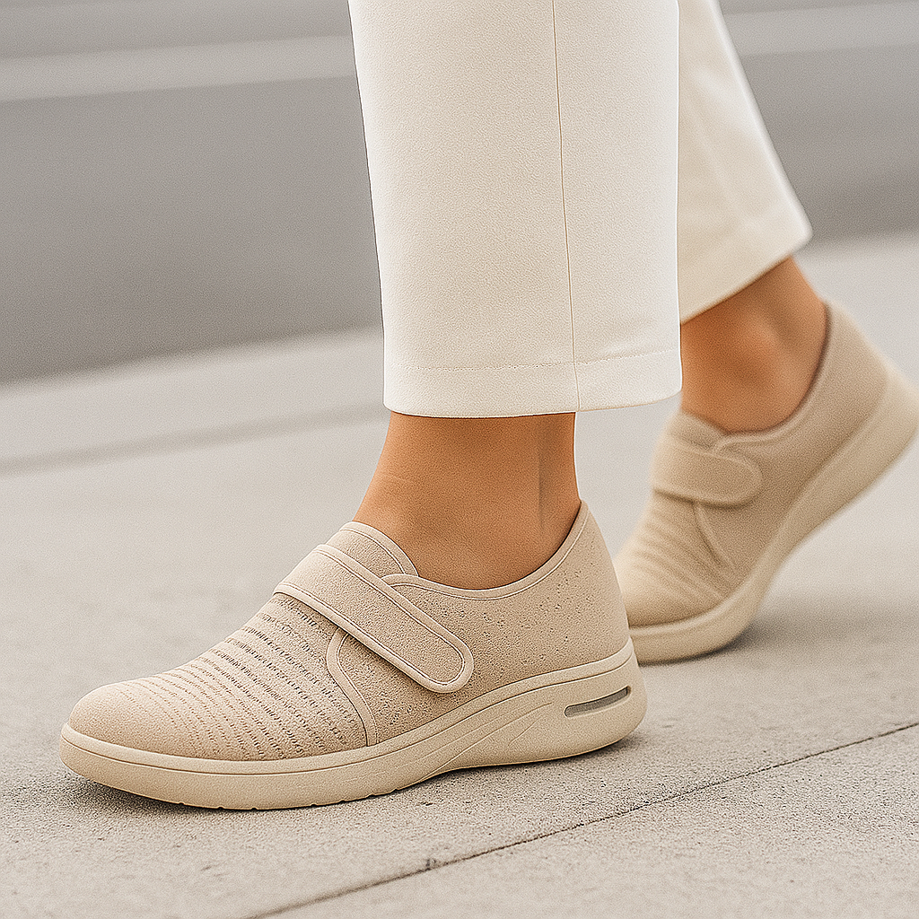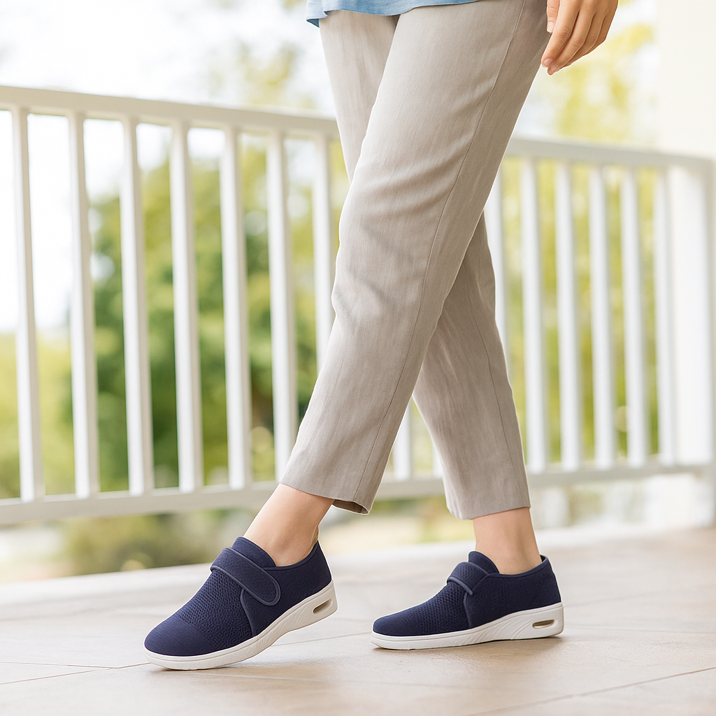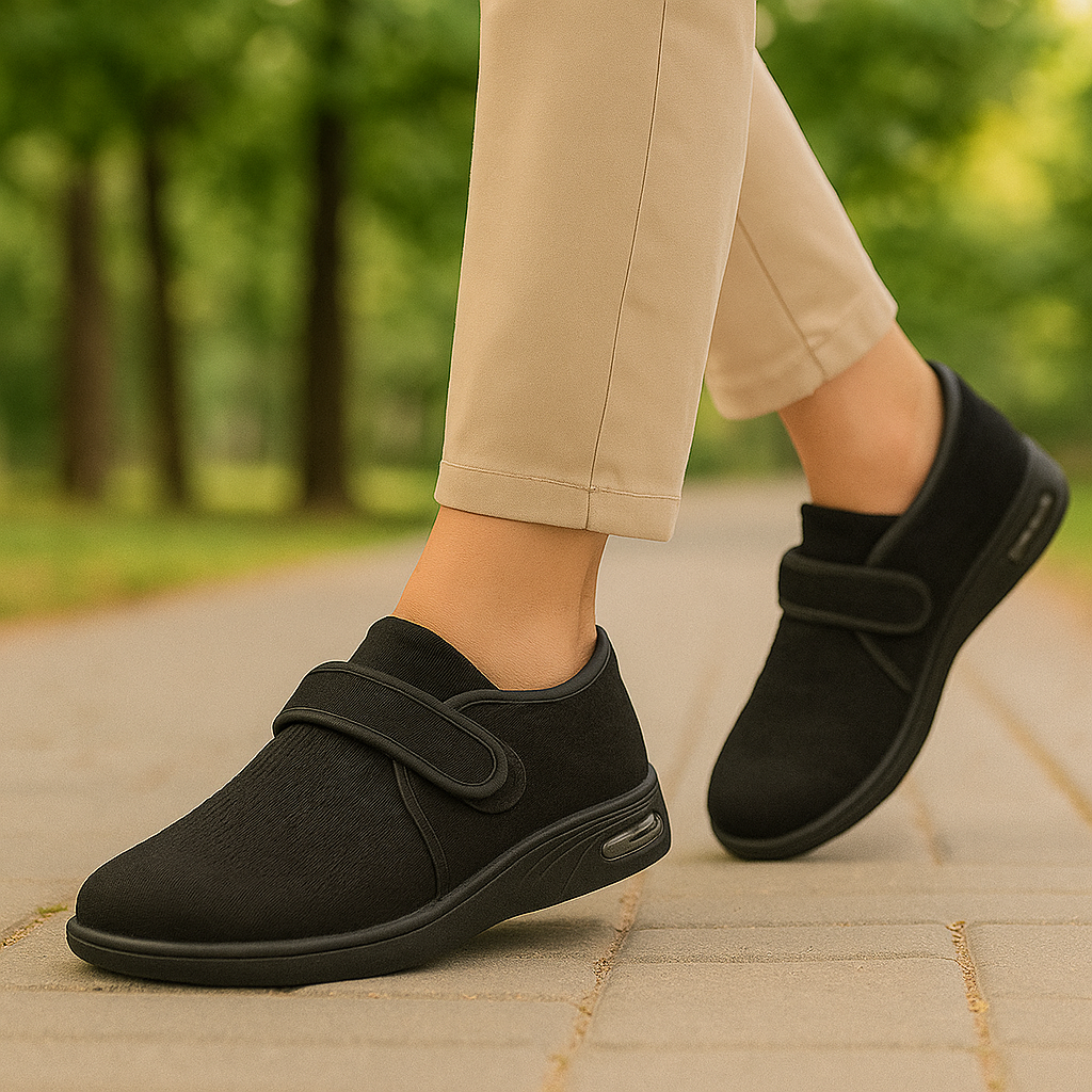 נעליים אורטופדיות אלו מציעות נוחות יוצאת דופן לרגליים רגישות או נפוחות. העיצוב הנשימתי שלהן והסגירה המתכווננת מבטיחים אחיזה מושלמת לאורך כל היום.
