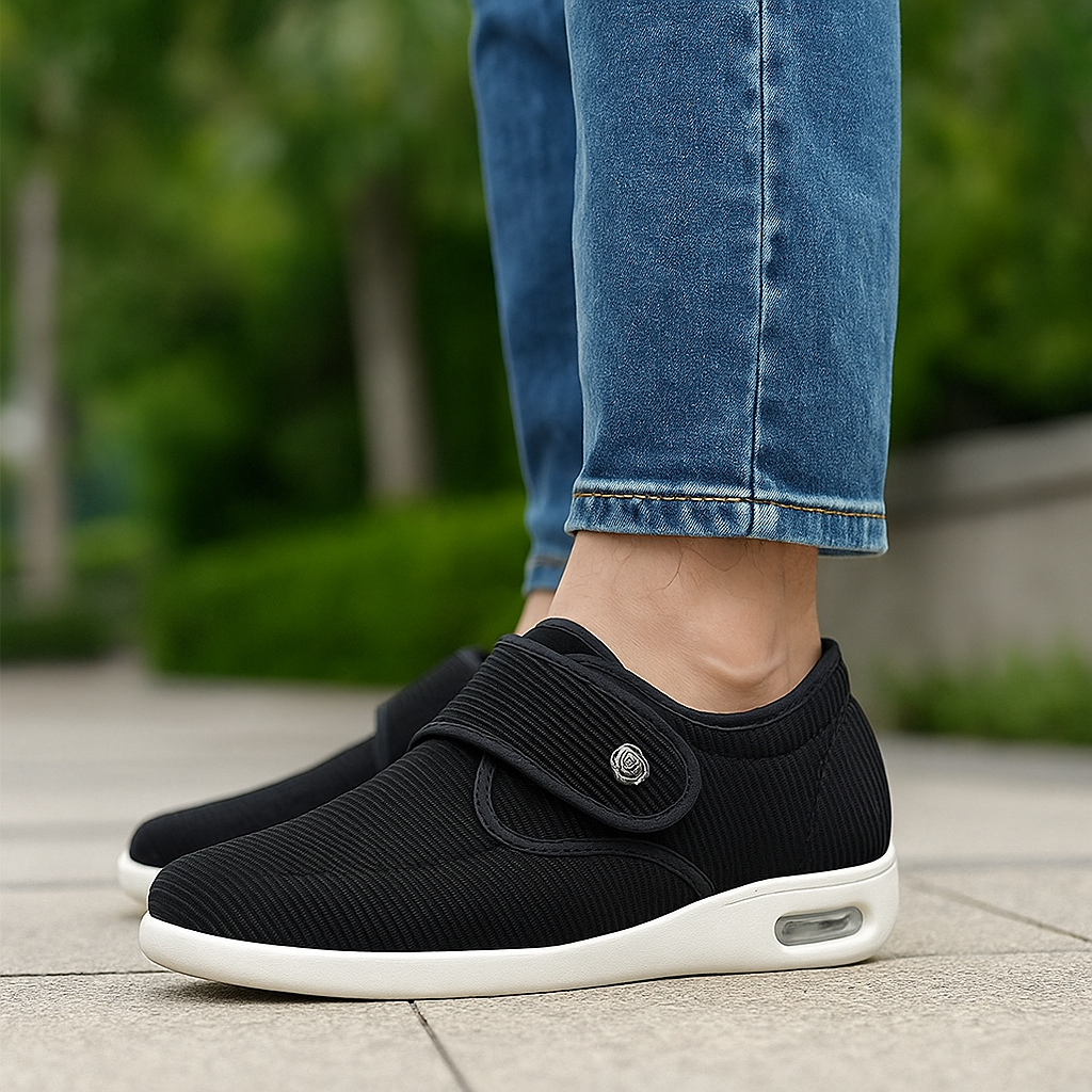 נעלי אורתופדיה אלו מציעות נוחות יוצאת דופן ותמיכה מושלמת לכף הרגל. העיצוב להחלקה והסוליה המפחיתת זעזועים מבטיחים הליכה חלקה, אידיאלית לשימוש יומיומי או ממושך.