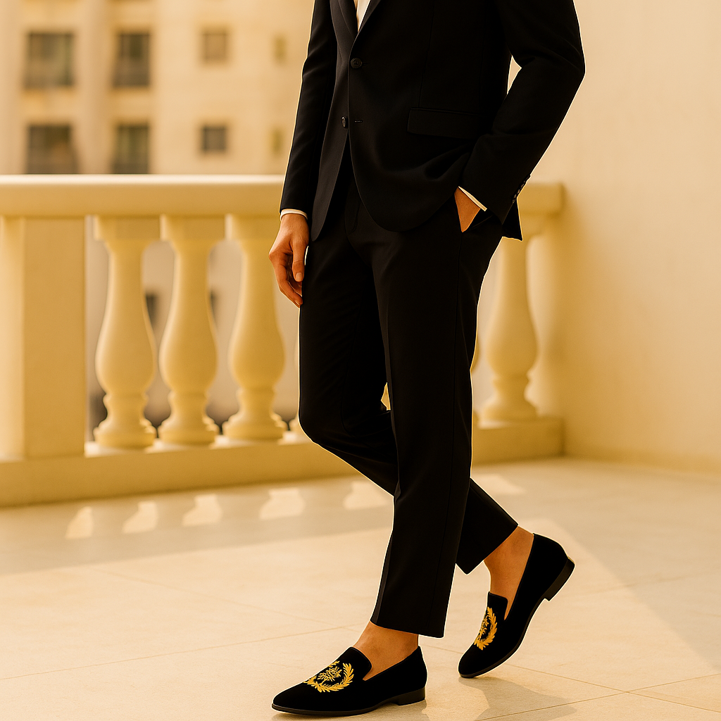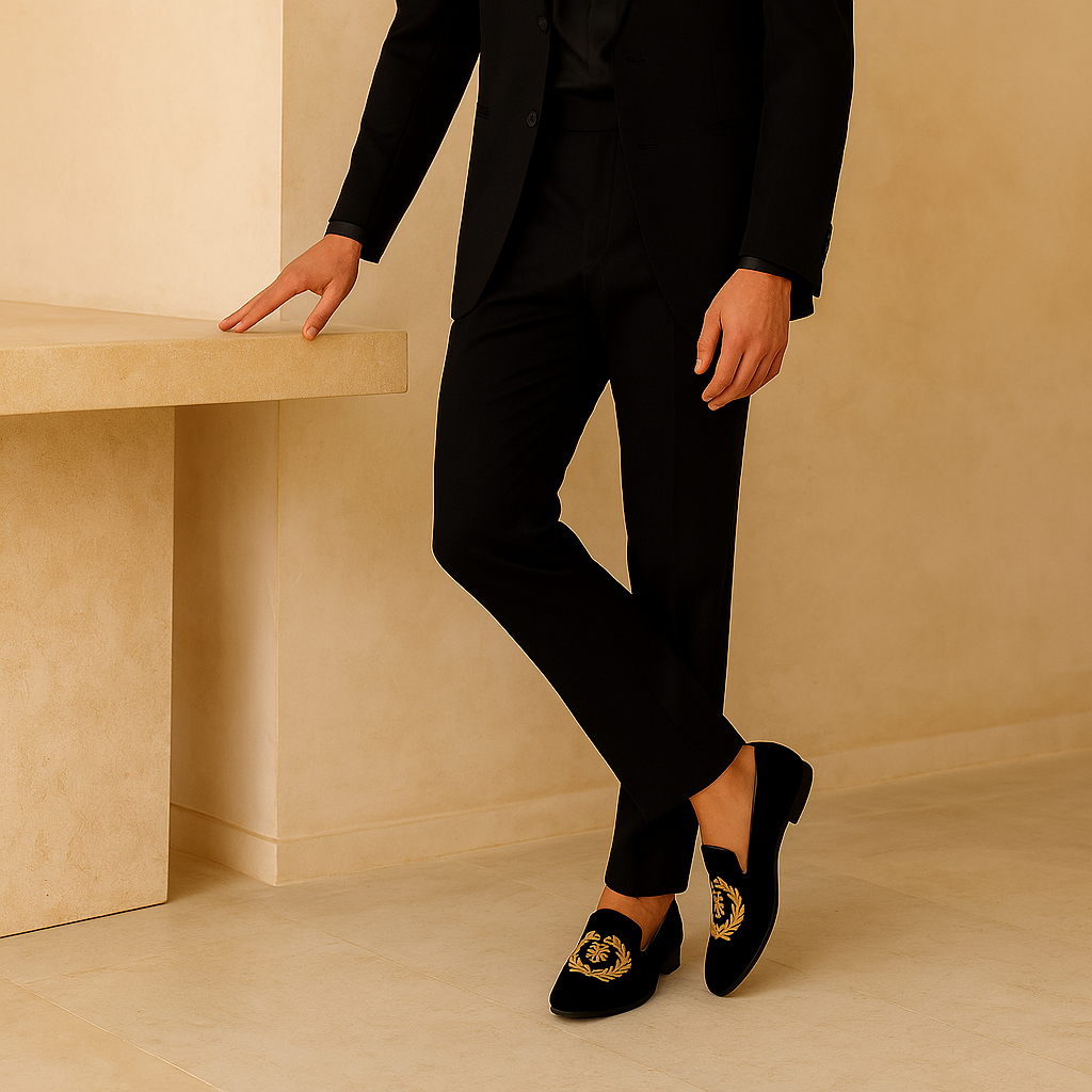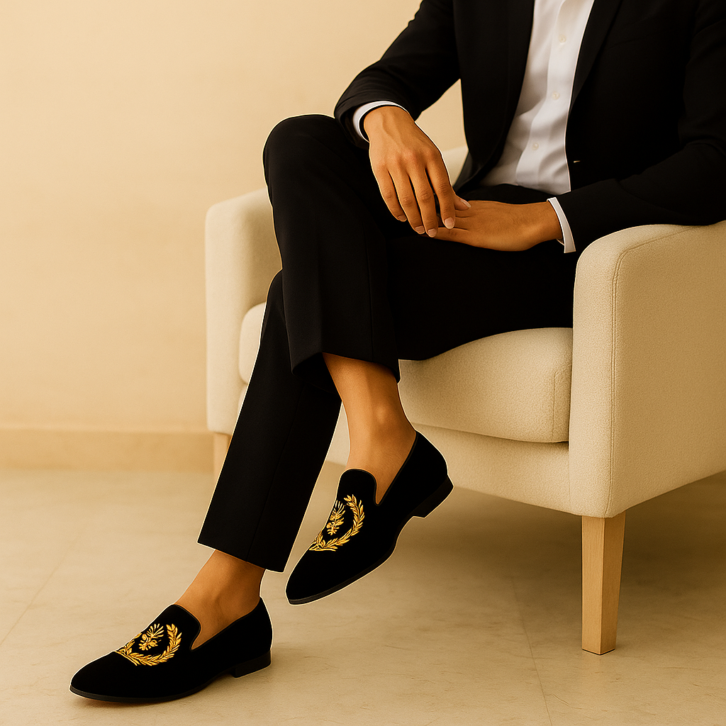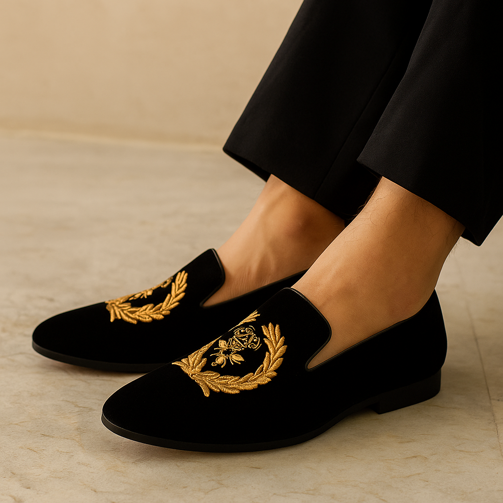 מוקסינים אלה מקטיפה עם רקמה זהובה מוסיפים נגיעה של יוקרה ואלגנטיות למראה שלך. נוחים וסטייליסטיים, הם מתאימים גם לערב אלגנטי וגם ליציאה שיקית וקלילה.