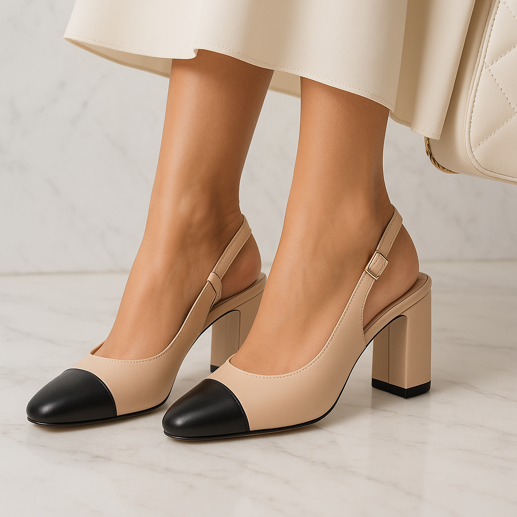 סילואטה : נעלי עקב עם קצה מרובע עיצוב : דו-צבעוני עם רצועה מתכווננת חומר : עור סינתטי חלק עקב : בלוק יציב ונוח סגנון : אלגנטי ורב-תכליתיEscarpins Slingback Femme Helene – עקבים אלגנטיים ונוחים