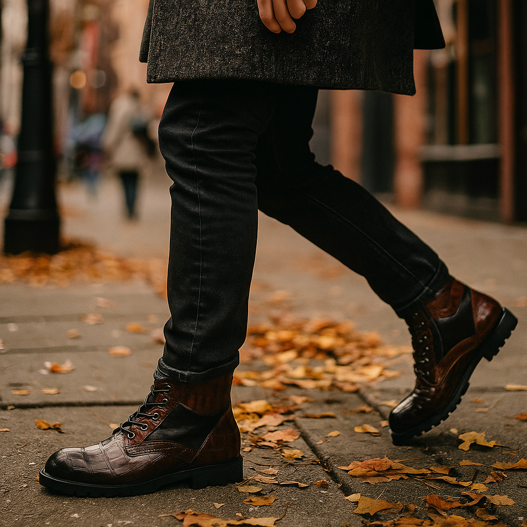 נעלי Jamison משלבות עמידות צבאית וגימור אופנתי. הטבעת עור התנין הייחודית, השרוכים הקלאסיים והסוליה עם פרופיל מבטיחים עמידות, אחיזה ומראה שאין שני לו — אידיאליות לשימוש יומיומי ולשטחים.