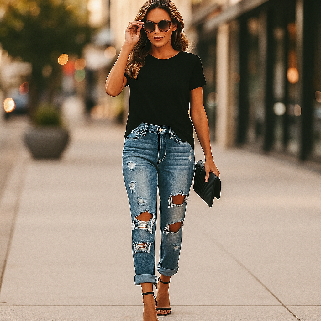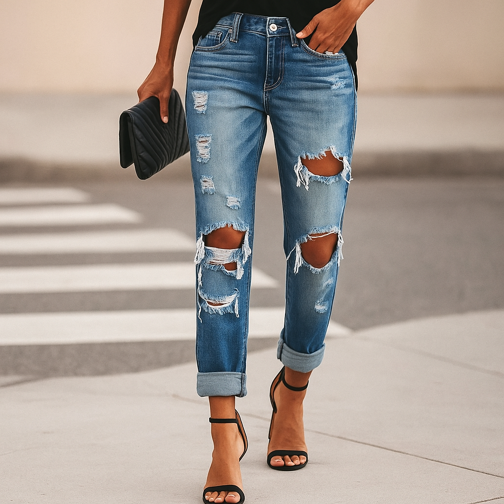 ג'ינס בויפרנד לנשים עם פרטים קרועים