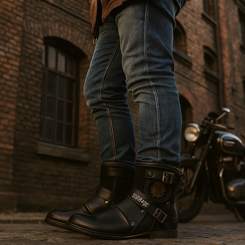 חומר : עור אמיתי פרימיום סוליה : נגד החלקה וגמישה סגירה : אבזמים מתכווננים עיצוב : פרטים חרוטים ותפירה בניגוד נוחות : ריפוד פנימי רך