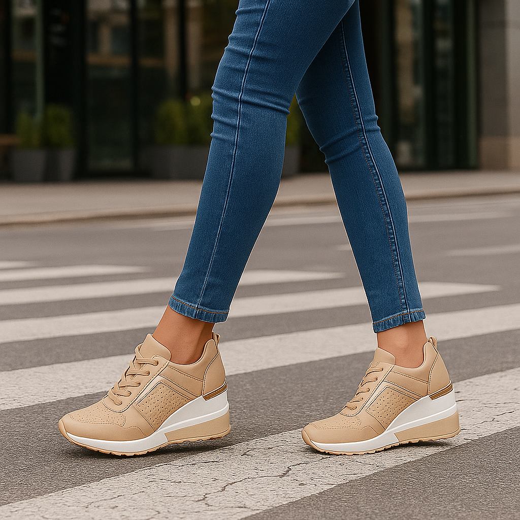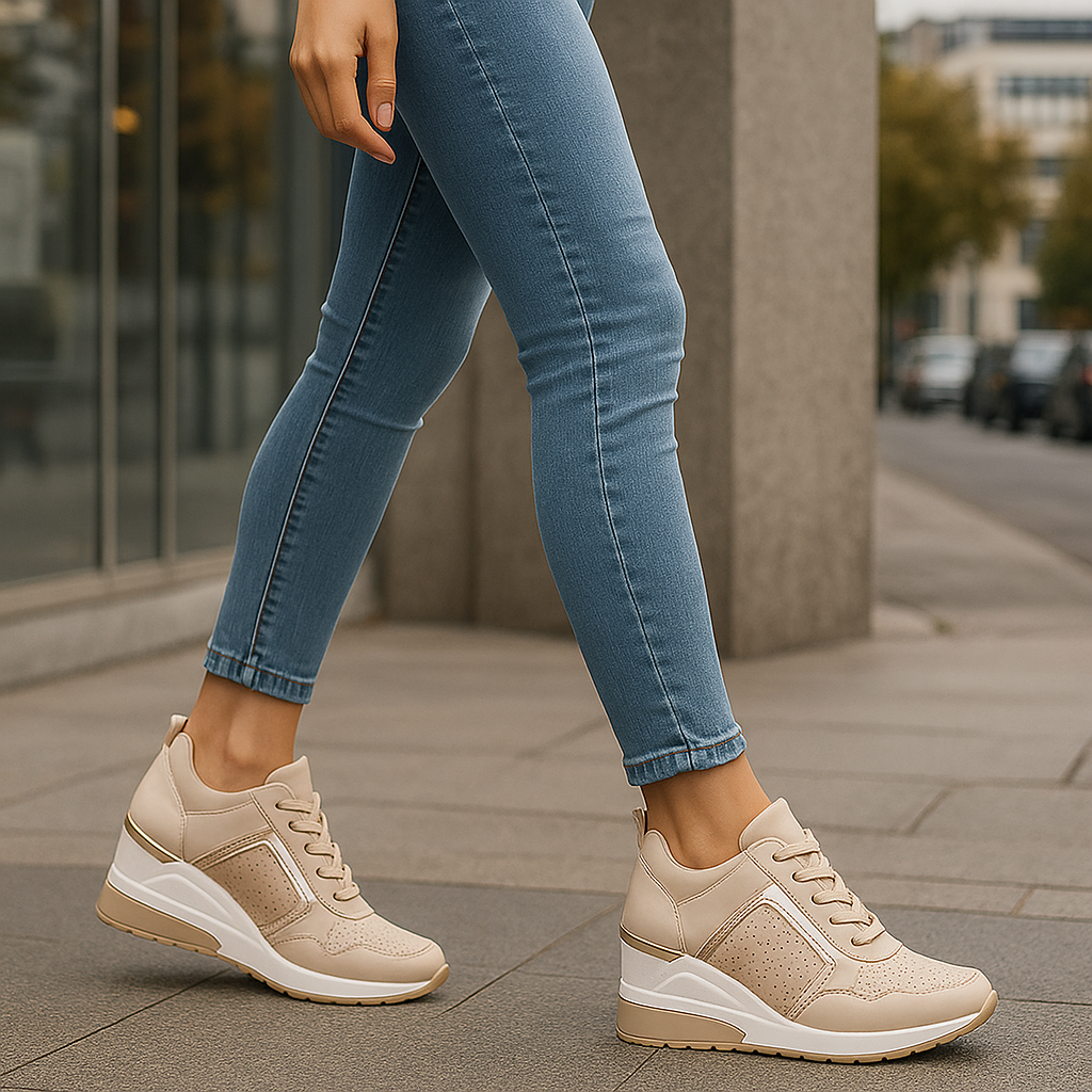 נעלי הספורט עם העקב האלו מביאות נגיעה מודרנית ונשית למלתחה שלכם. העיצוב המעודן שלהן והסוליה הרכה מבטיחים סגנון שיקי ללא פשרות על הנוחות.