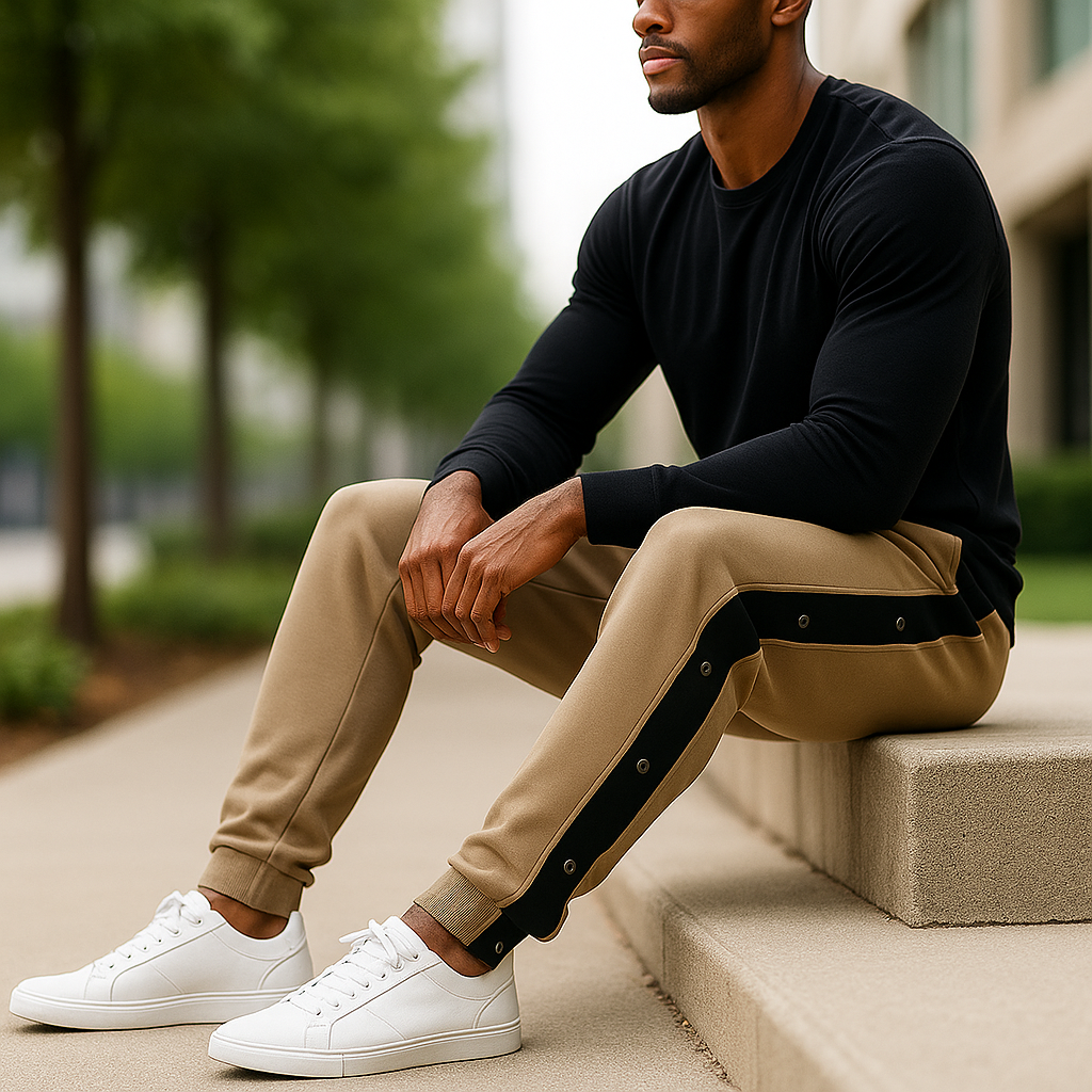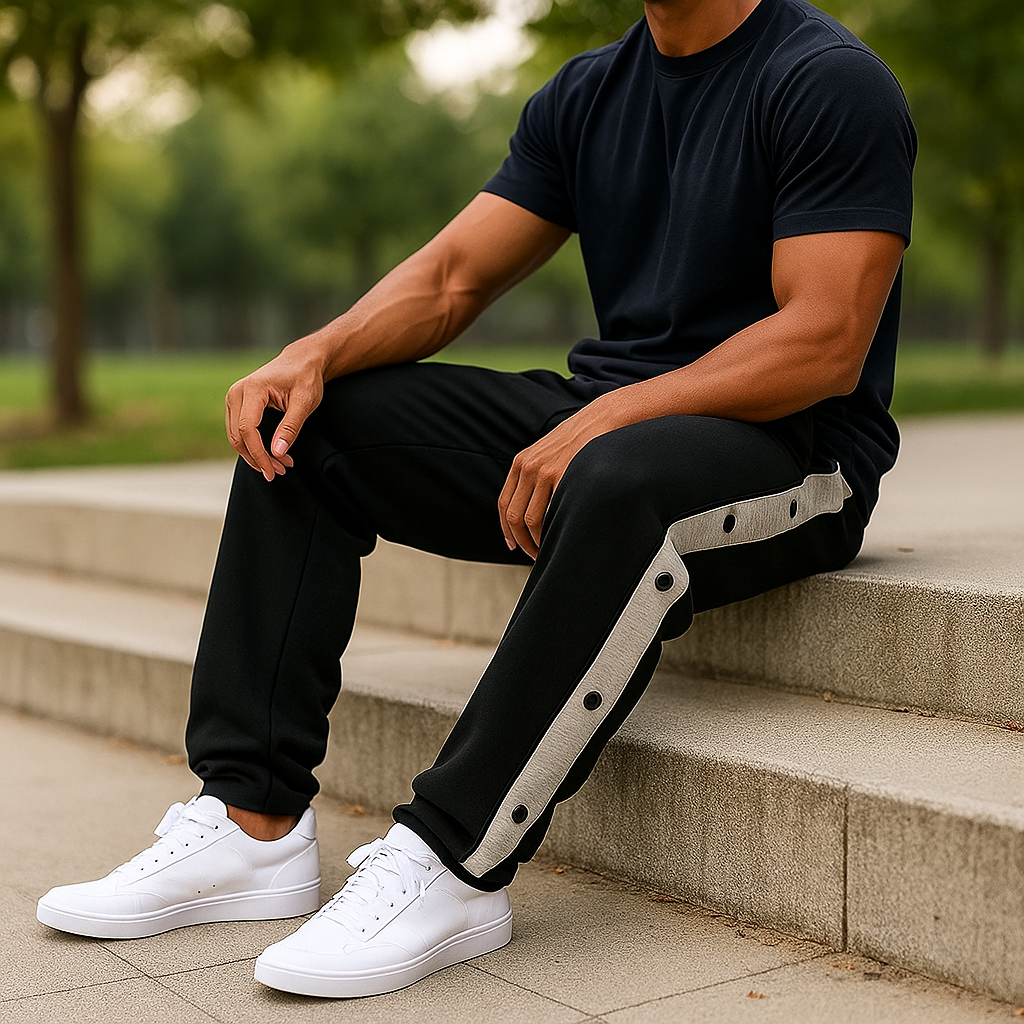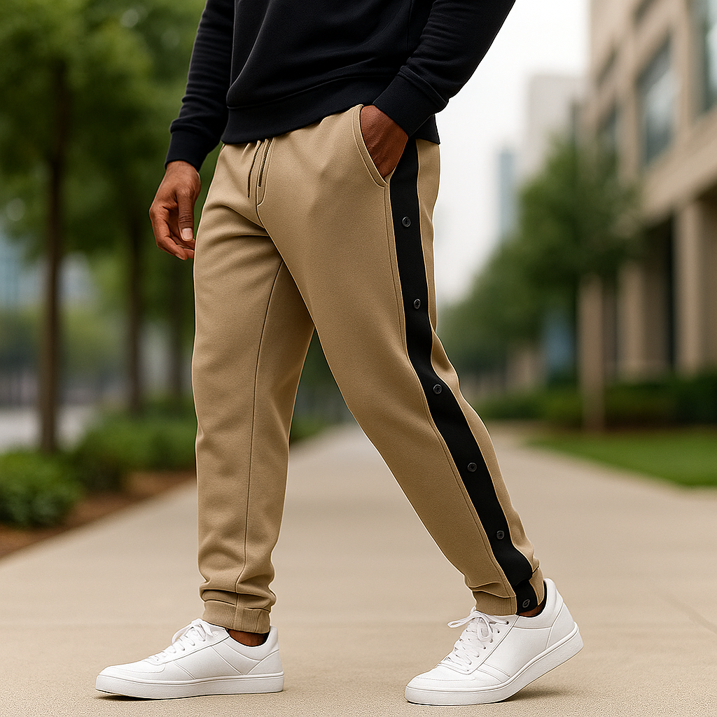 מכנסי הג'וגינג האלה משלבים עיצוב מודרני ונוחות יוצאת דופן. מושלמים לספורט או לרגעי רגיעה, הם מציעים התאמה אופטימלית בזכות המותן האלסטית וכפתורי הלחיצה הצדדיים בסגנון ייחודי.