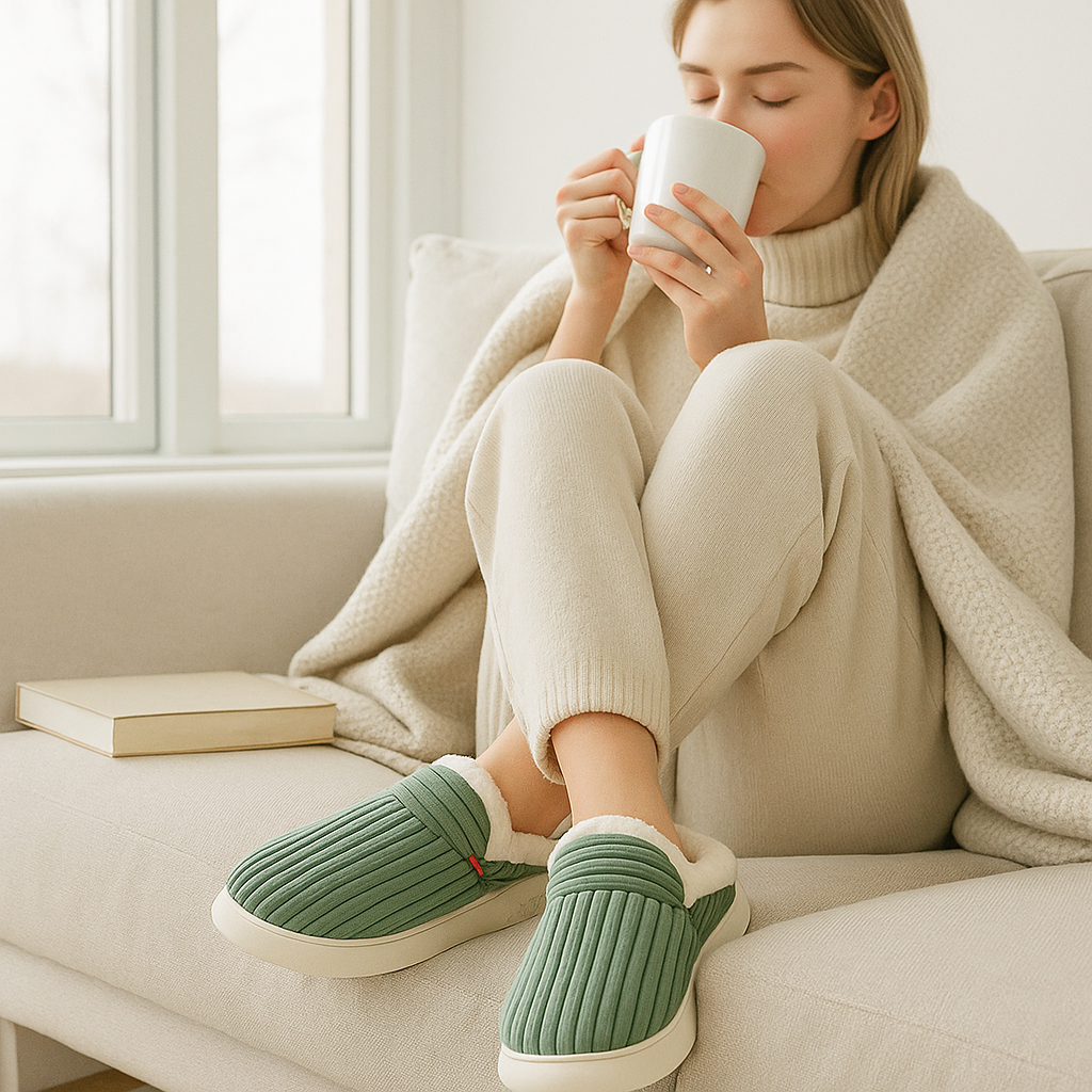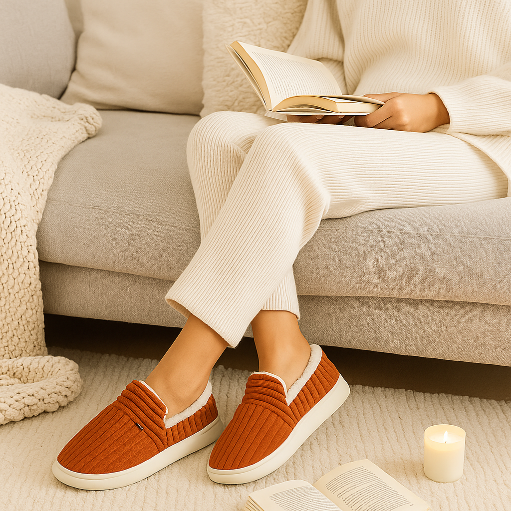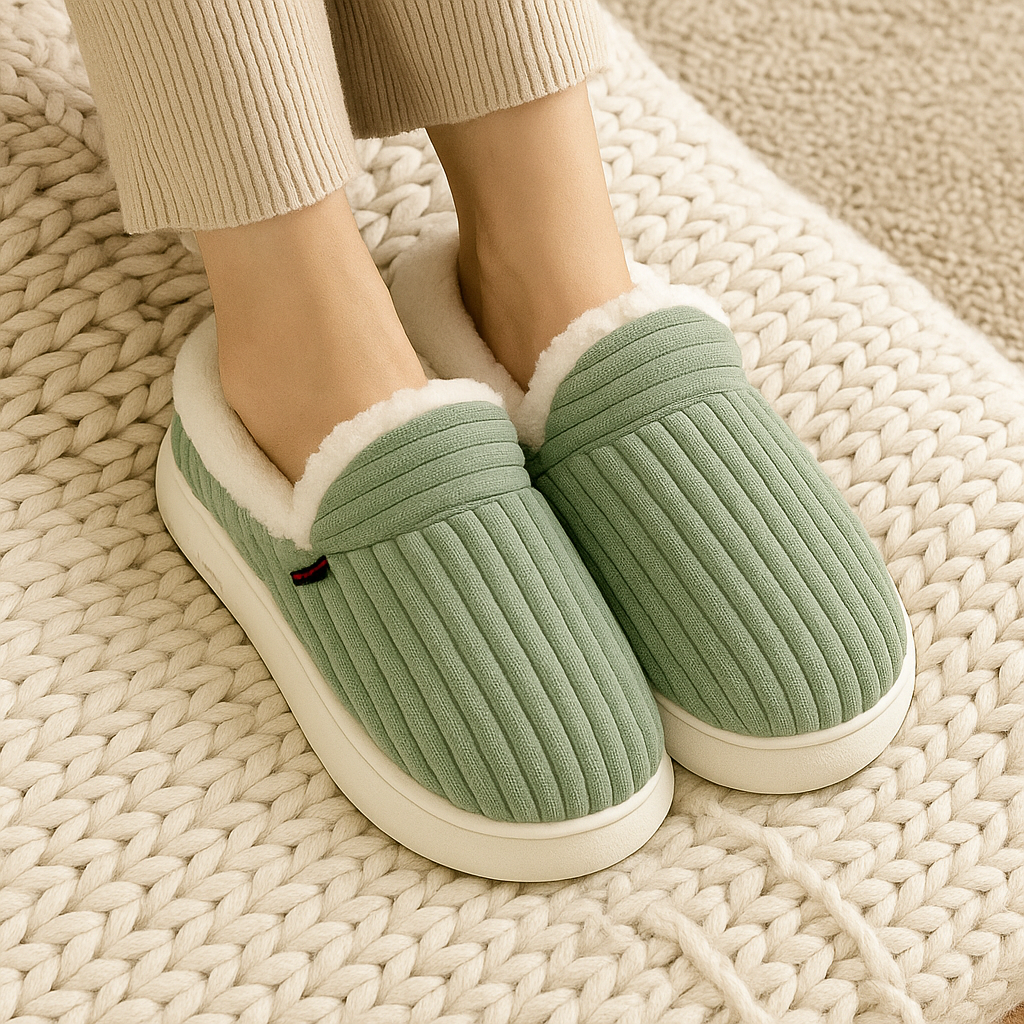 עטפו את רגליכם ברכות עם נעלי בית אלו מקטיפה פסים, מושלמות למנוחה בבית. הריפוד בשרפה שומר על רגליכם חמות ומציע נוחות שאין לה תחרות.