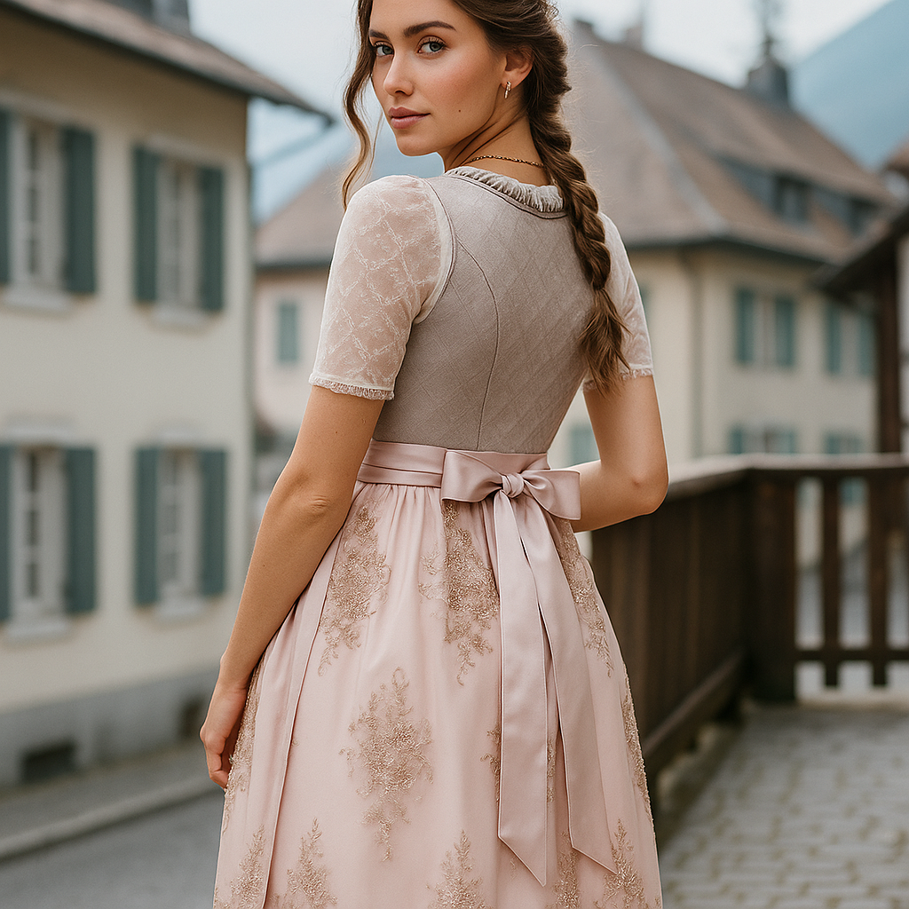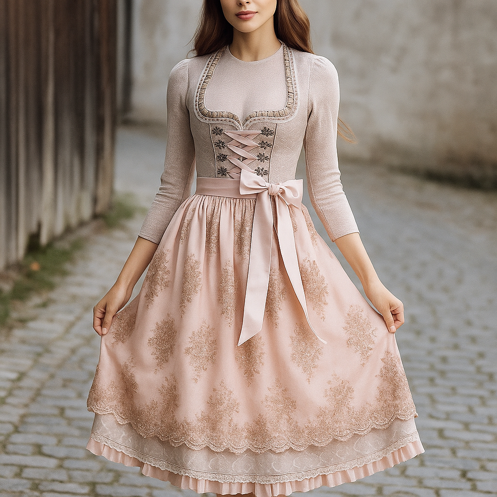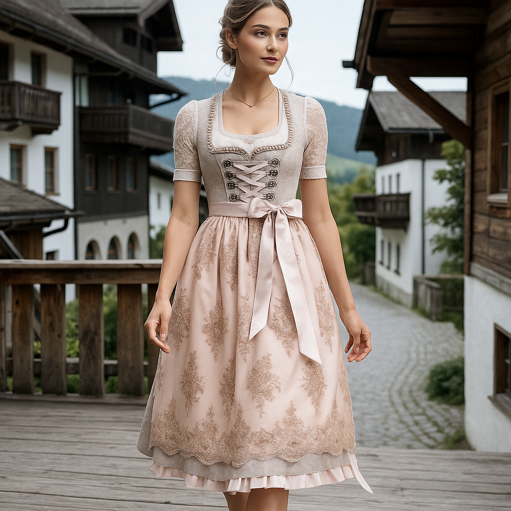 הבליטו את החגיגות שלכם עם שמלת דירנדל מעודנת זו, המשלבת בדים עדינים ופרטים רקומים. הסינר הסאטן והגזרה המתאימה מדגישים את הקימורים בנגיעה נשית ואלגנטית, מושלמת לפסטיבלים ולערבי נושא.