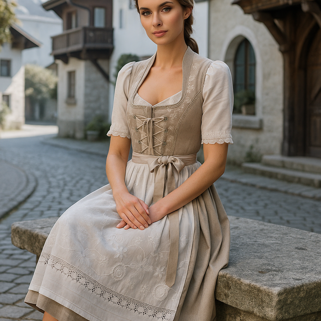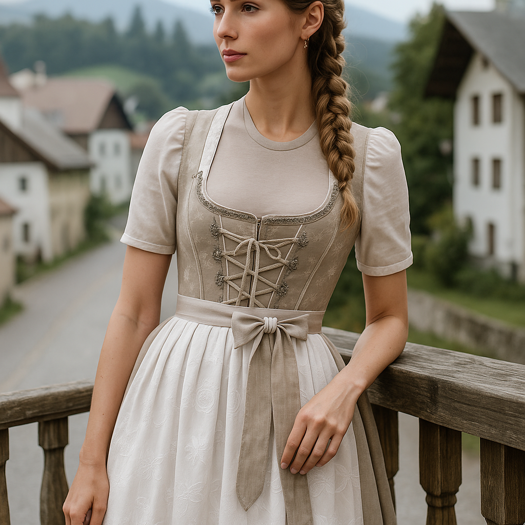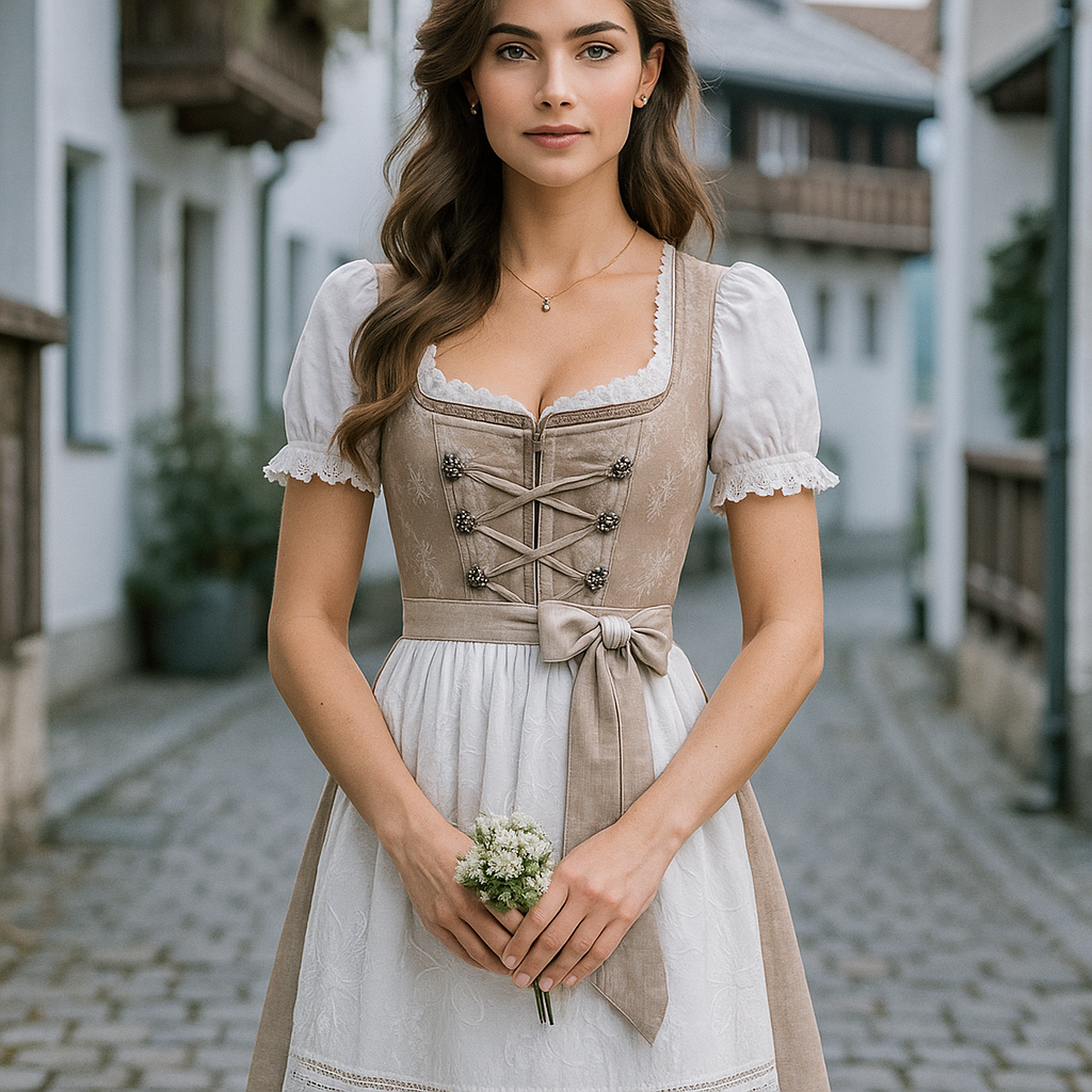 הבליטו את החגיגות שלכם עם שמלת דירנדל מעודנת זו, המשלבת בדים עדינים ופרטים רקומים. הסינר הסאטן והגזרה המתאימה מדגישים את הקימורים בנגיעה נשית ואלגנטית, מושלמת לפסטיבלים ולערבי נושא.