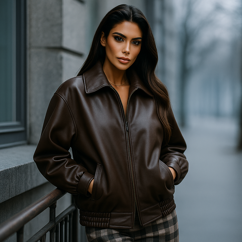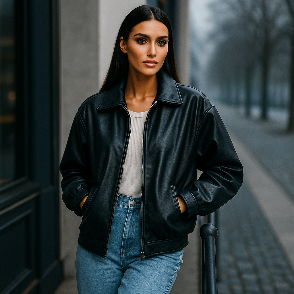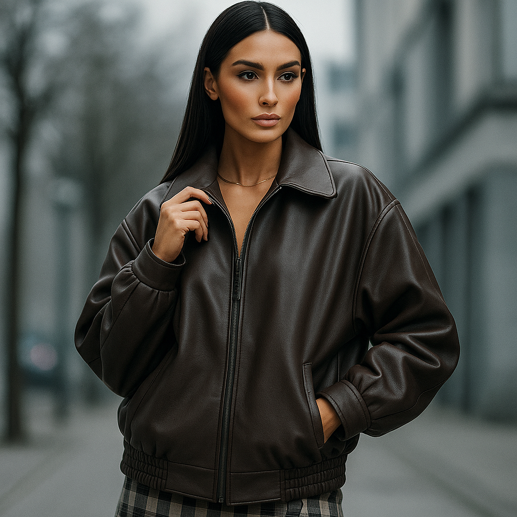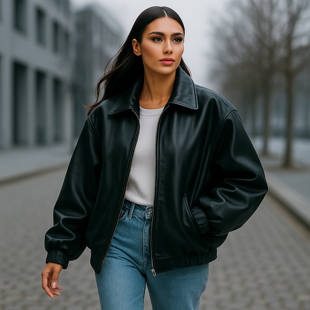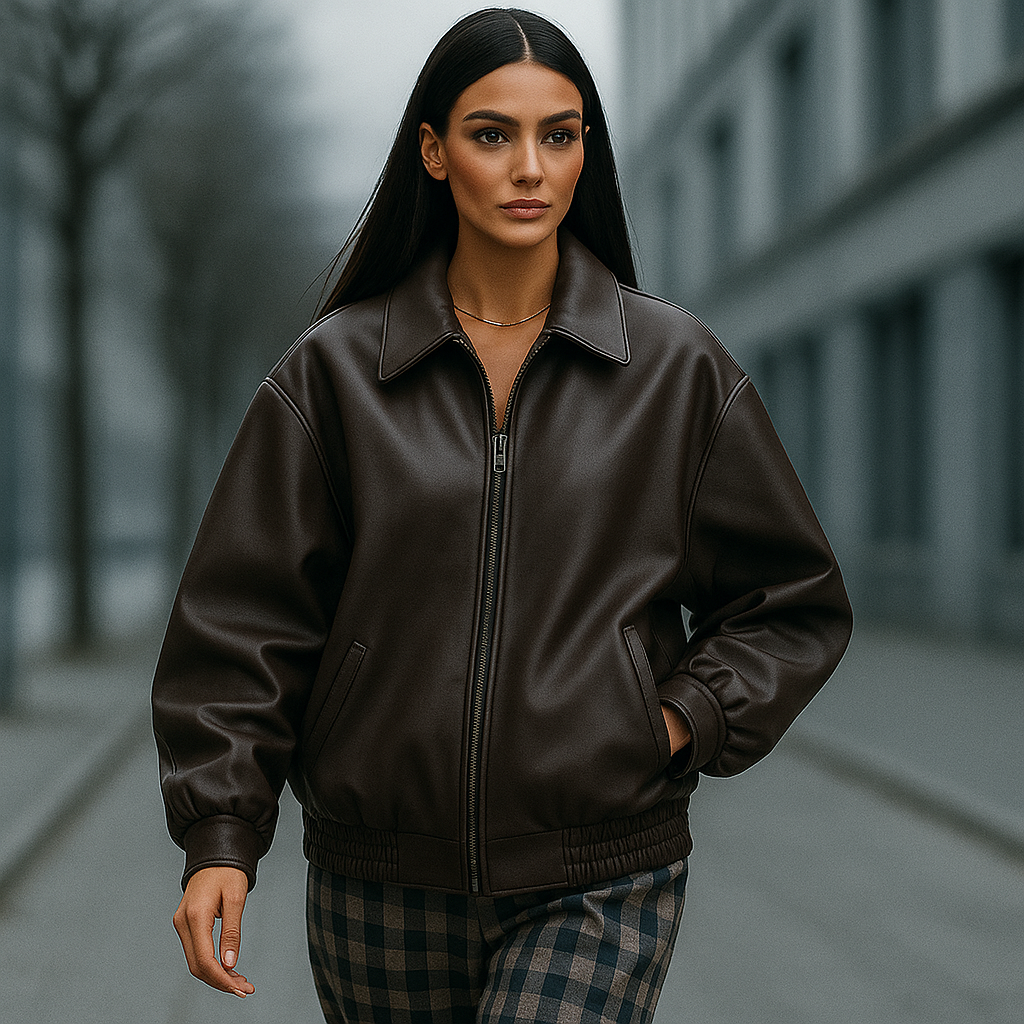 שדרגי את הארון שלך עם ז'קט עור לנשים אוברסייז שמשלב נוחות ועיצוב מודרני. הגזרה באורך הירך והרוכסן הקדמי מקלים על הסטיילינג עם שמלות וג'ינסים. מושלמת לאביב, סתיו וחורף, כשאת רוצה מראה נינוח אך נועז.