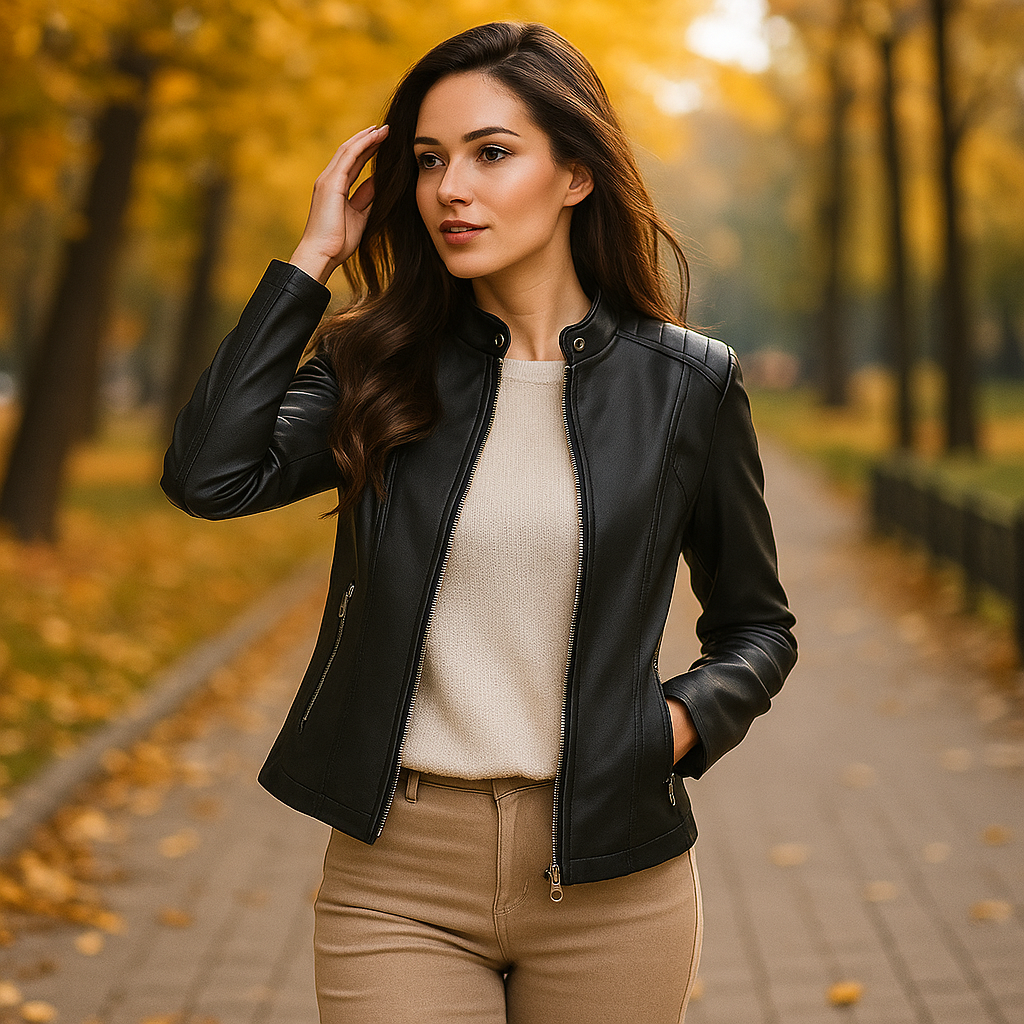 הצהירו על הסגנון שלכם עם ז'קט העור Stilla, עם צווארון מאו מודרני וגזרה מותאמת. אלגנטי ונוח, הוא משדרג את כל הלבוש שלכם, מהיומיומי ועד לאירועים מיוחדים.