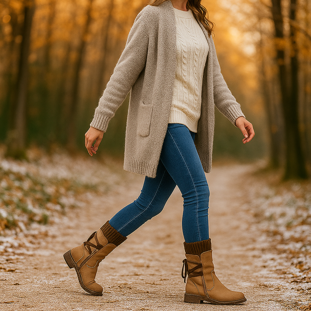 Ces bottines en suédé apportent une touche élégante tout en assurant un confort douillet par temps froid. Le détail lacé au dos et les finitions soignées ajoutent une note moderne à vos looks hivernaux.