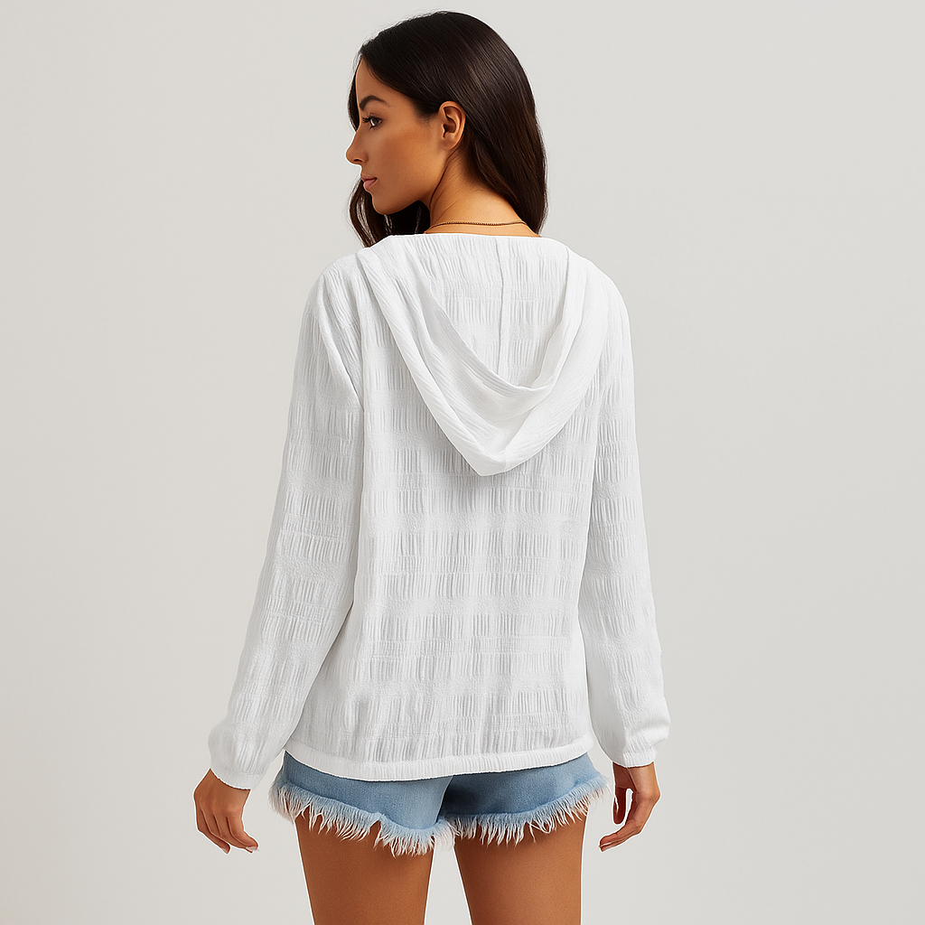 Le Cardigan à Capuche Texturé Léger pour Femme allie confort et design moderne.