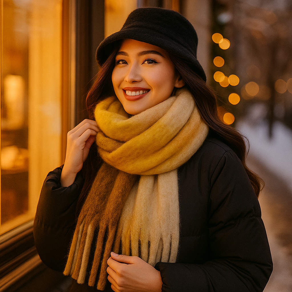 Matière : 100% laine douce Dimensions : 38 × 230 cm Style : Grand format à franges Couleurs : Dégradés vifs et tendance Utilisation : Écharpe ou châle polyvalent